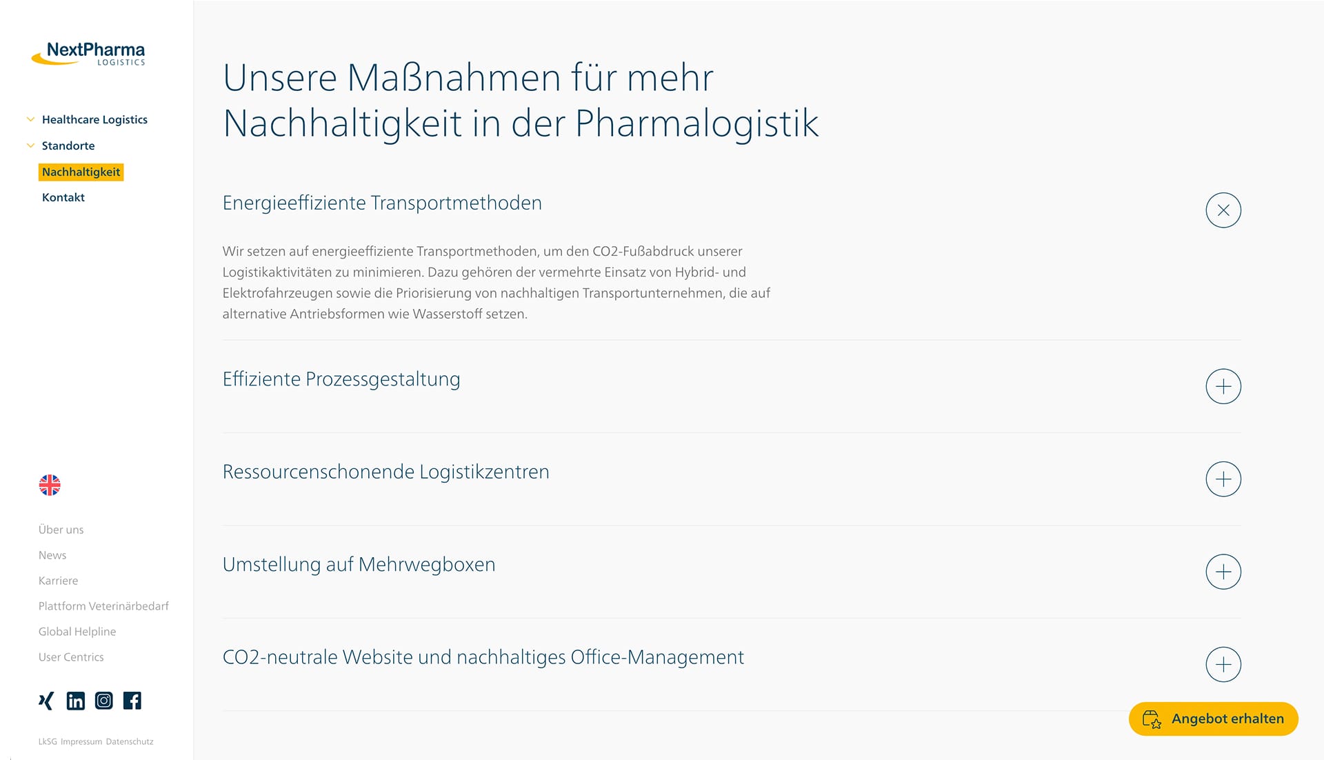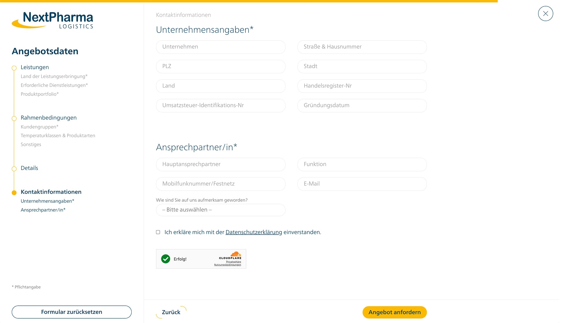 Alle wichtigen Informationen werden strukturiert abgefragt, sodass du ohne Umwege ein passendes Angebot erhältst. Gleichzeitig bleibt das Formular übersichtlich und nutzerfreundlich – effizient für dich, praktisch für NextPharma.